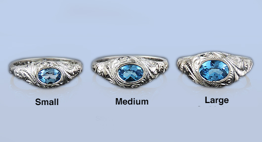Small (6x4mm gem)     Medium (7x5mm gem)   Large (8x6mm gem)
