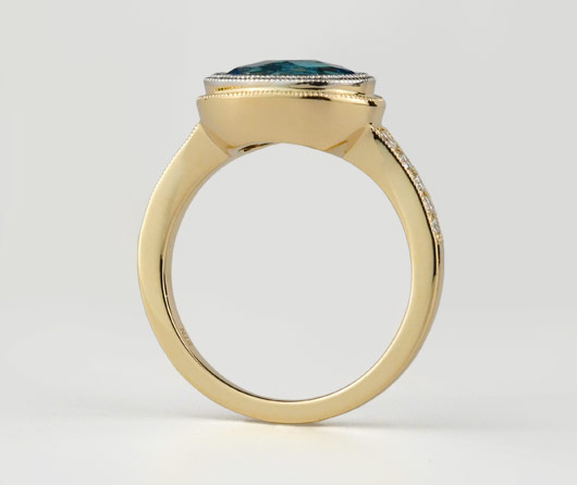 We continued to get requests for this ring with aquamarine priced at over $3,000. We told one of our requesters about the blue topaz option, explaining that the blue color would be stronger and cost less. He told us to make one. We did, and he loved it.
