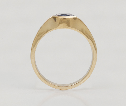 The design From Sea to Shining Sea is set with an oval gem flowing east to west across the finger. Women love this. At the open ends of the color center are two sets of three diamonds which graduate out into the wings. All gems are set low, all surfaces are smooth, all gems are securely set. This is a ring to love for generations. This will sound crazy coming from the seller…if you could have only one ring this would be it.