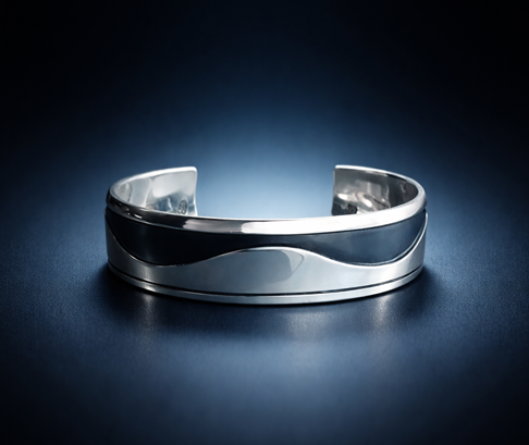 The bracelet has a nice weight. It has a nice balance physically and visually. The dark sky and the silver waves flow beautifully against one another. Often, simple is best.
