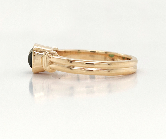 Now to the gem. It’s a native natural gem of Maine, SparHawk mint green teal Maine tourmaline. It’s from a gem mine 28 miles north of our store, cut by a Maine Irish guy who is totally obsessed with gem precision and perfection. There is symphony and harmony in the balance and flow of light within the gem. It’s color and brilliance whispers Celtic beginnings.