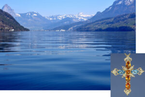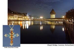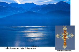 My memory of Lucerne, it was a grand city filled with mystery, set into the hills at the foot of the Alps next to a lake. I was there at Easter and attended a Sunday service. I will never forget the interior of the church. It looked like the detailing on our cross.