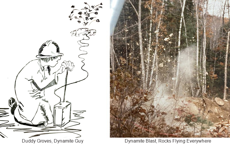 When it was blast time I asked if I could stand with the dynamite guy at the blast box. They said, “No. Go out into the woods and find a big tree. When you hear the blast make sure you’re standing behind the tree.” I said, “You’re kidding.” They both said, “No. Seriously, a big tree.”