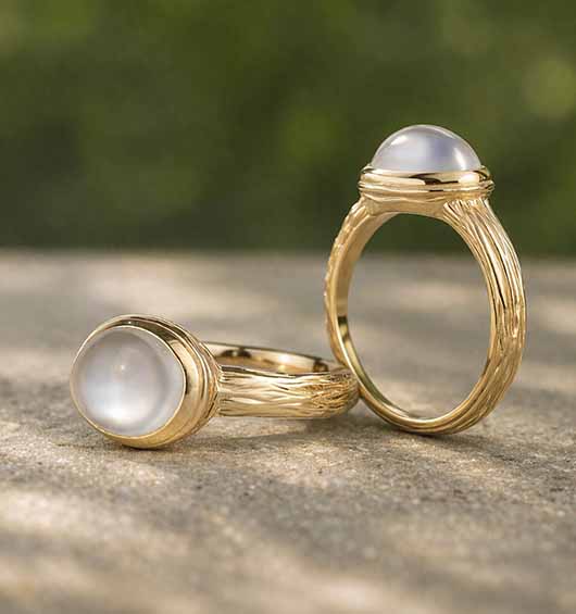 Moonstone is a gentle gem. It’s gentler than even a pearl. Moonstone is millions of years old. Moonstone is as soft as a baby and yet it’s hard like other gems. Moonstone is mysterious. It possesses layers of mystery that allow light to enter, melting light into softness like fog and allowing light to reflect through the top and as it does, the gem glows. The gem glows softly with light that seems to float above its surface. Rock it to the left, the soft light rolls across the surface almost defying what the eye expects. The soft white light hovers seemingly above the surface. We consider moonstone to be a contemplative gem. The mind relaxes in its presence. The heart calms. The soul knows this is a gem of serenity and magic.