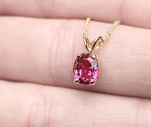 Pink Maine tourmaline is beautiful, and today, in this size and quality, extremely rare. We were surprised to find this gem. Set simply, this necklace is all about the pink tourmaline. If you think you’d like one…don’t wait.