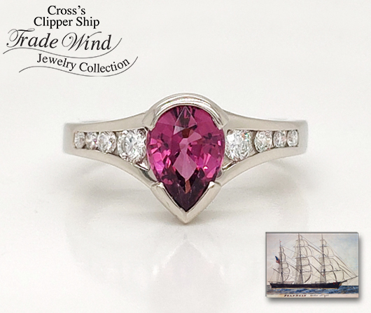 The jewelry in our Trade Wind Collection is made by his great-great-great grandson, Keith. This young man went to sea as well, at age 18. As part of his service to the US Navy, his travels took him to many of the same places his great-great-great grandfather’s clipper ships visited. Keith also had a hobby unconventional for sailors— he had a fascination for gems and he studied gemology. He studied so that when his service was completed, he could become a jeweler. As Keith traveled the world, he collected exquisite gems, and after leaving the service and returning home, he mastered the art of fine jewelry making.