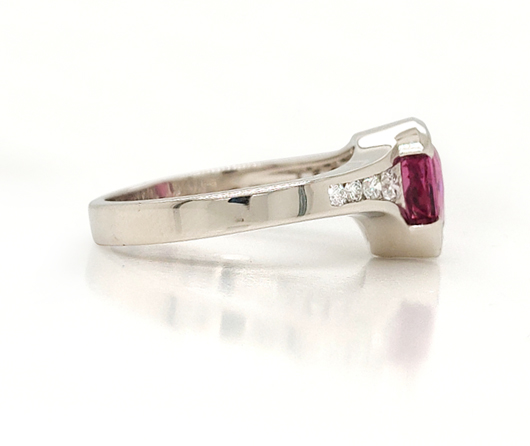 Gull’s nest on the sheer cliffs of Whitehead on Monhegan Island. Standing at the top with an expanse of endless blue ocean beyond, where gulls glide on updrafts, it’s a rare view on the coast of Maine…to be standing above flying gulls. This Gull ring has a vivid pink sapphire center and eight bright white diamonds on the outstretched wings. The ring feels as free as the gulls soaring above the cliffs. Come to Maine, go to the shore. Find a good chair. Spend a week or two.