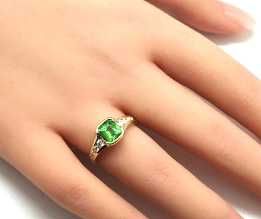 To move into the deeper gemology of this new gem, it is a rare member of the garnet family. Garnet is a gem that occurs in every color but blue (Russia was a source of a yellow-green garnet many years ago). Since then, this new green garnet is the only other green gem garnet to come along…and its true color is pure green. Its gemological name is Tsavorite, and it is found in just one location – on the border of Tanzania and Kenya, Africa. Most gems are found in numerous locations throughout the world…part of what makes this gem rare is the limited geographical area in which it is found. Most people who see this gem will think it’s an emerald. Tsavorite garnet is clearer, more brilliant, and rarer than emerald.