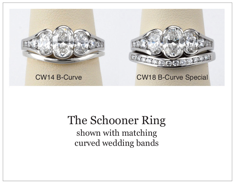 Awesome. Dazzling. It takes us a fair amount of time to acquire three perfectly matched oval diamonds. We can make only a few of these Schooner rings each year. Each one is worth the wait.