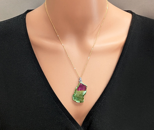 Watermelon Maine Tourmaline & Diamond Necklace - Cross Jewelers