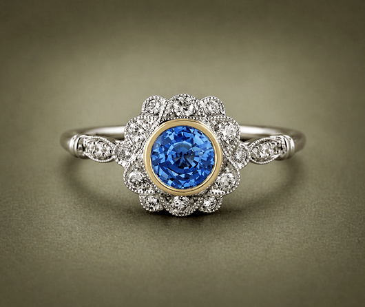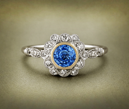 Angel with a Golden Halo Blue Sapphire & Diamond Ring