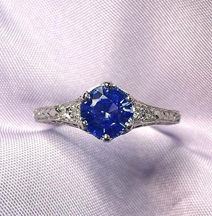 Calvin Coolidge 1925 in an Art Deco Design Sapphire & Diamond Ring