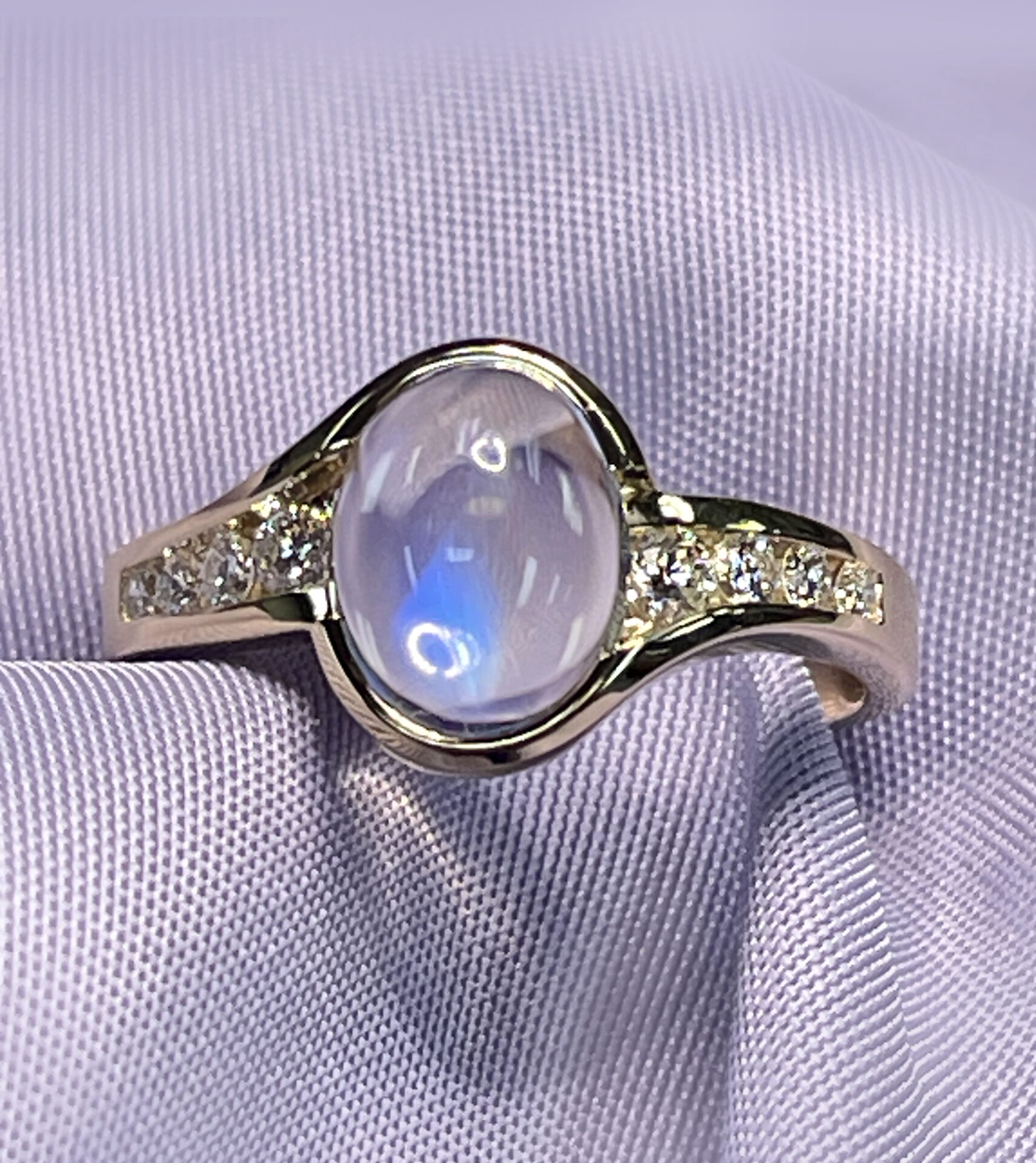 Sea Sense Blue Moonstone & Diamond Ring