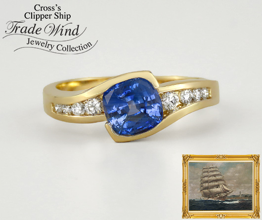 Mountain Laurel East-West Blue Sapphire Ring, White Gold