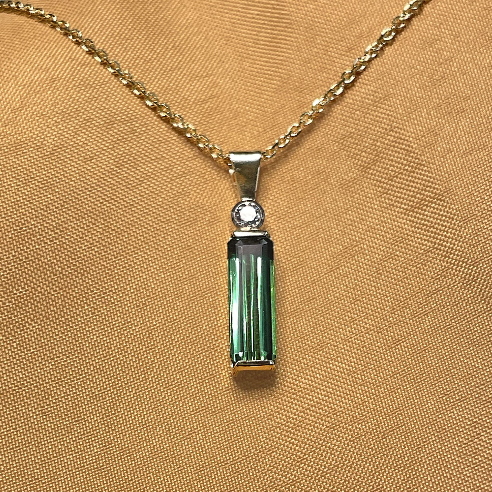 The Electric Boat Green Maine Tourmaline & Diamond Necklace