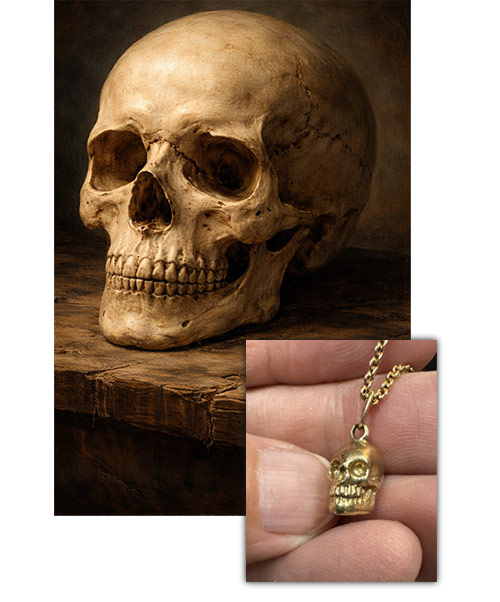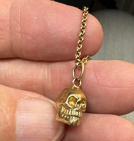Skull: 18 karat yellow gold, 6.6 grams